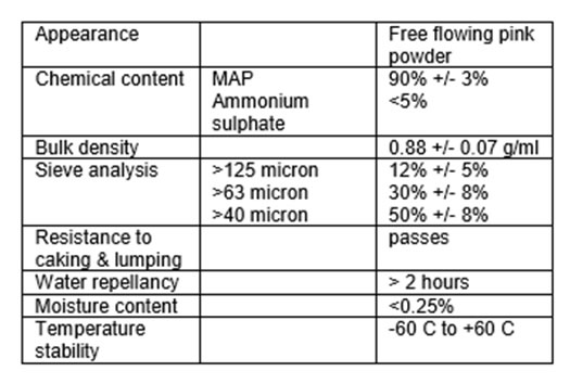 Renex ABC Forte is a mixture of highly efficient mono-ammonium phosphate and ammonium sulphate ground to selected particle sizes and made resistant to influences of climatic extremes by means of flow promoting and moisture repellent additives.
