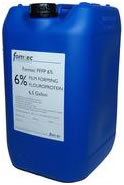 Fomtec FFFP 6% is a film forming fluoroprotein foam concentrate (FFFP) containing hydrolysed protein and preservatives, together with a blend of fluorinated surfactants to achieve the maximum synergistic effect. The blend of fluorochemicals selected is effective in reducing the surface tension of water as well as the interfacial tension between water and oil sufficiently low to give stable film on the surface of the fuel and as a result it gives fire extinguishing rates superior to those obtained with synthetic based compounds. Incorporation of protein in the formulation produces a thick visible blanket which has exceptional burnback resistance. Fomtec FFFP 6% should be used as a 6% proportioned solution in fresh or sea water. The correct proportioning or mixture ratio is 6 parts of concentrate and 94 parts of water.